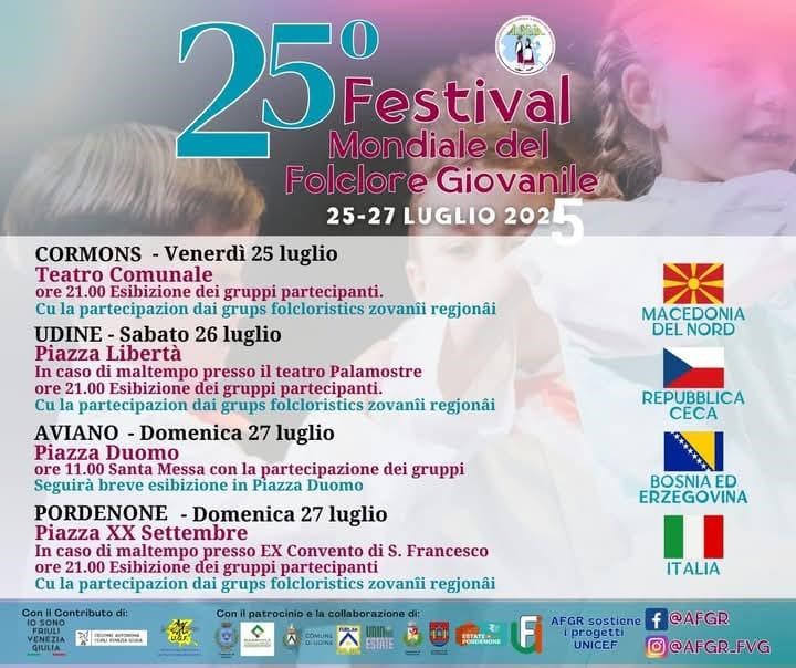 Fiore all’occhiello delle attività A.F.G.R.-FVG A.P.S. è l’organizzazione, nel mese di luglio, del Festival Mondiale del Folclore Giovanile che ogni anno propone nelle più importanti piazze del territorio Regionale le esibizioni dei gruppi giovanili provenienti da tutto il mondo, in collaborazione con le realtà locali.
