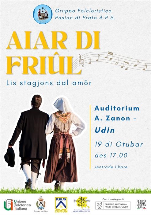 Domenica 19 ottobre Ore 17.00 Auditorium A. Zanon – Udine Un appuntamento da non perdere per vivere insieme la bellezza autentica del Friuli e la sua tradizione più viva. Vi aspettiamo! Con il sostegno di: Comune di Udine · Furlan in Comun · Regione Friuli Venezia Giulia · Unione Folclorica Italiana · UGF FVG · Io sono Friuli Venezia Giulia