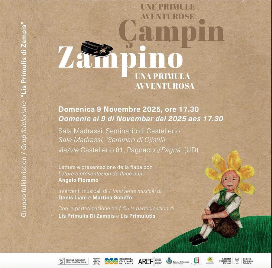 “Çiampin, Zampino una primula avventurosa”, scritta da Diego Minisini e illustrata da Alexa Giorgiutti.