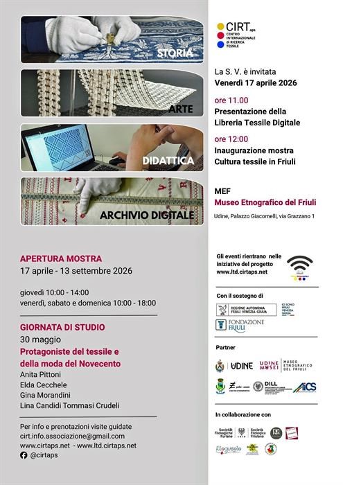 Il percorso espositivo si articola in tre sezioni. La prima è dedicata alle imprese e agli artigiani che hanno segnato la storia tessile friulana, dalla manifattura settecentesca di Jacopo Linussio ai tessitori carnici, fino al Cotonificio Spezzotti. La seconda sezione presenta le attività didattiche di CIRT aps Formazione e Filegusiele. La terza raccoglie